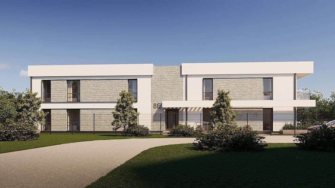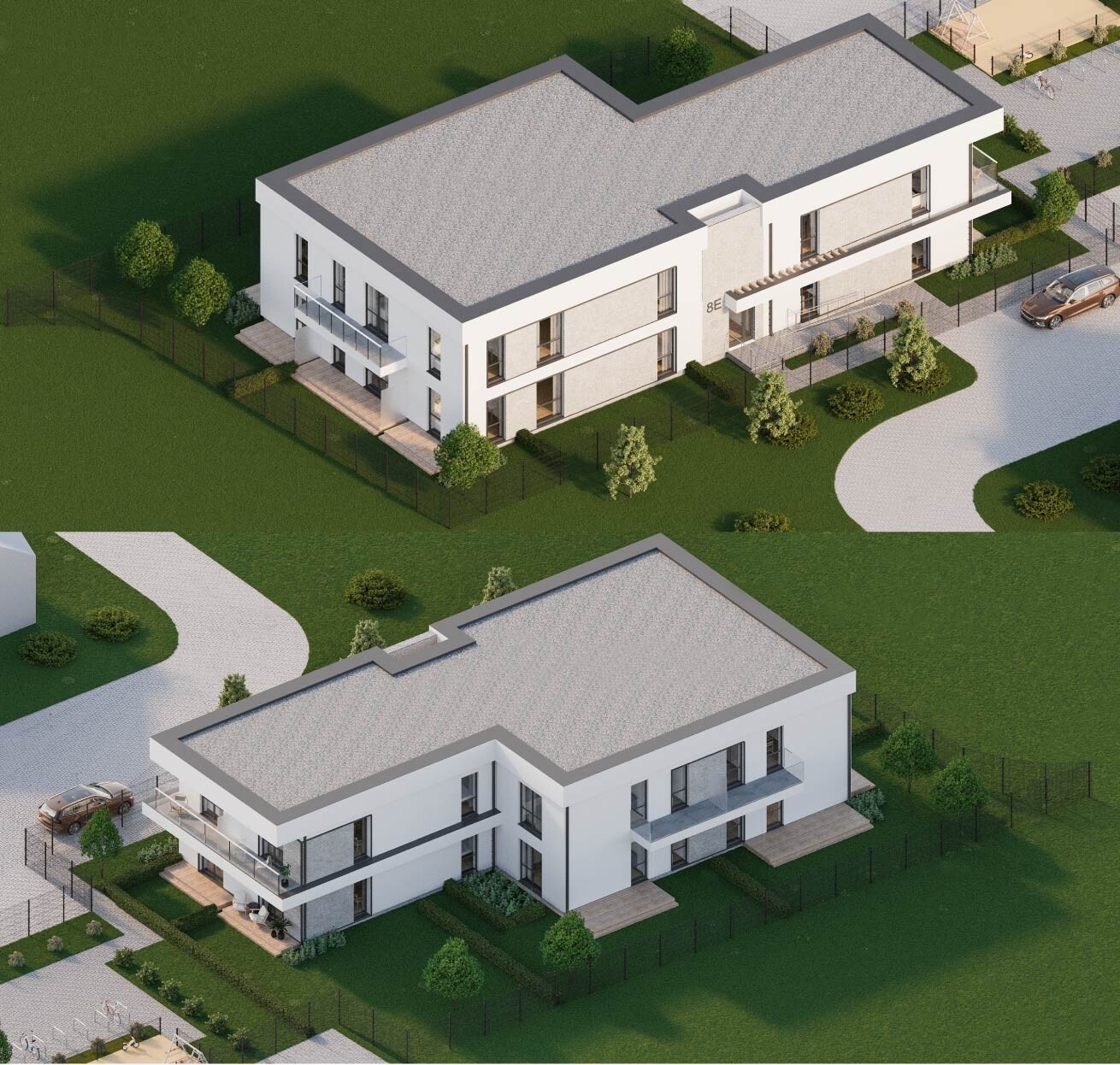 - Nowoczesna inwestycja mieszkaniowa- kameralny budynek o eleganckiej, minimalistycznej architekturze, zaprojektowany z myślą o komforcie mieszkańców oraz harmonii z otaczającą zielenią. Prosta bryła z wyraźnymi, poziomymi podziałami, duże przeszklenia oraz połączenie jasnego tynku z okładziną o strukturze cegły nadają całości prestiżowy, współczesny charakter.